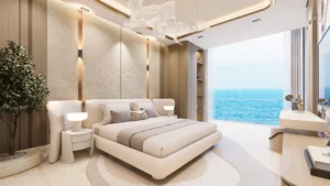 The interiors are available in two signature styles: Blanco Luxe (minimalist and modern) and Aqua Luxe (inspired by the serenity of the sea).