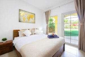 Discover this bright and spacious 2-bedroom, 2-bathroom apartment located in the serene and family-friendly community of Al Waha Villas, Dubai. Set within a charming townhouse, this ground-floor unit offers direct garden access and a peaceful residential atmosphere, perfect for families or those seeking comfort and privacy.
